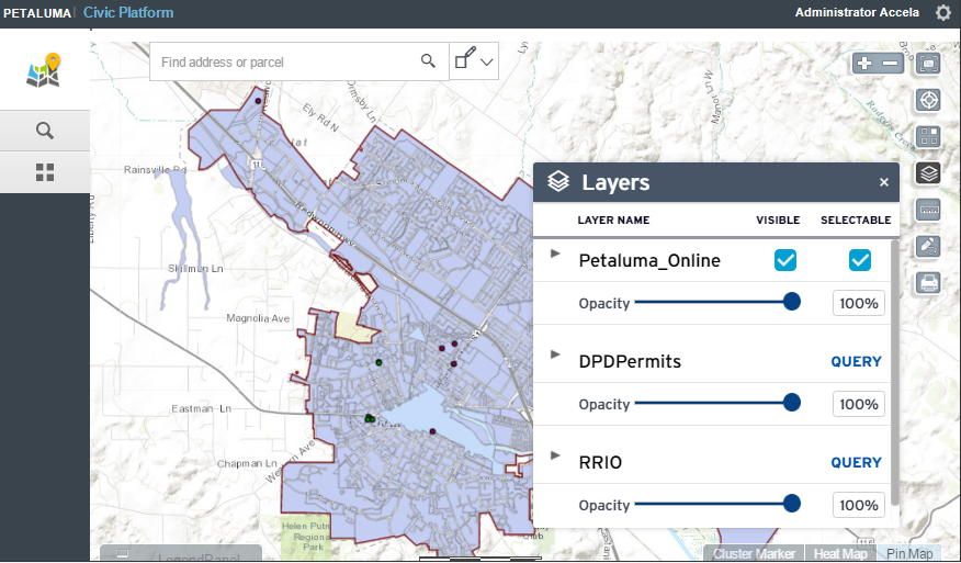 - In Civic Platform 8.x+, Accela Silverlight GIS supports the ability to switch to the legacy user interface which uses the Accela GIS map viewer.