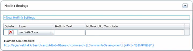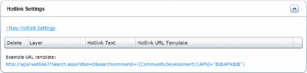 You can configure hotlink settings for Accela Silverlight GIS. Hotlinks allow agency users to pass parameters from the map control to a predefined URL.
