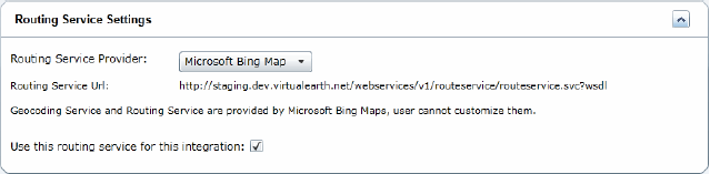 Use this routing service for this integration | Mark this check box if you want the selected routing service to be the default routing service in your map integration environment. Otherwise, clear this check box. |