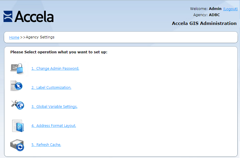 If necessary, log in to the Accela Silverlight GIS Administration site.