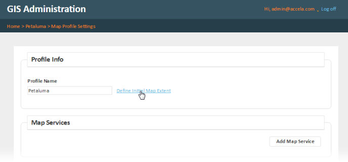 The initial map extent on a map service is defined at the map profile level. The following procedure assumes you already created a map profile for which you want to define an initial map extent.