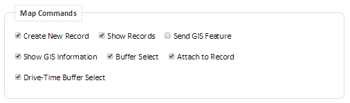 Create New Record | When you enable this command, users can create records from the map viewer. For example, a field worker might want to create a record for a parcel and request an inspection. |